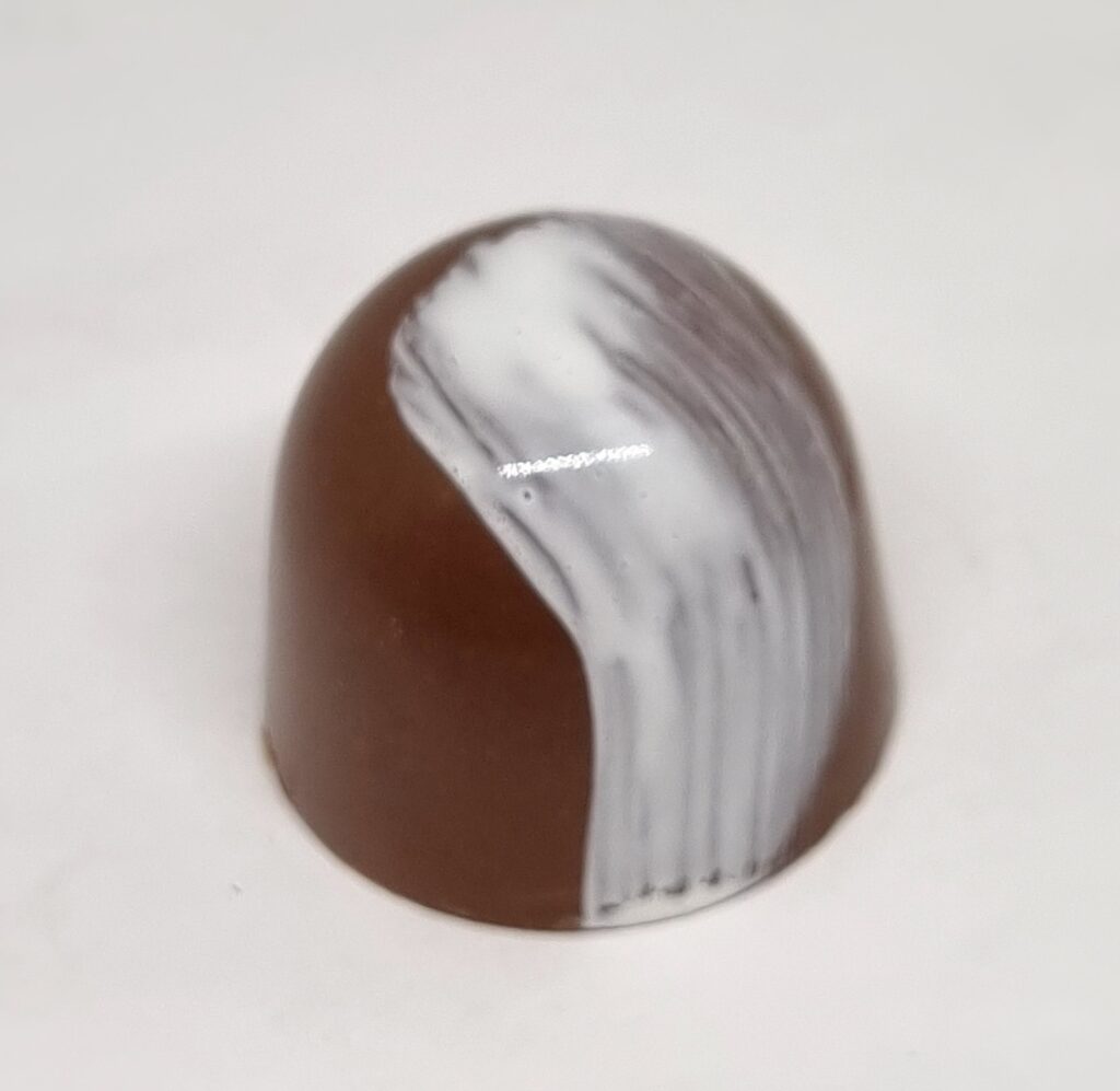 milk chocolate shell filled with white chocolate and Baileys ganche